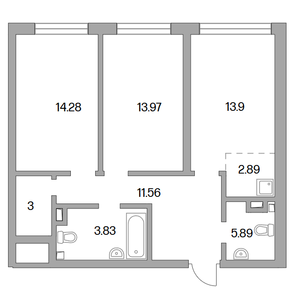 Сдача в 2027 году 13.9, 13.97, 14.28 м2 2.89 м2