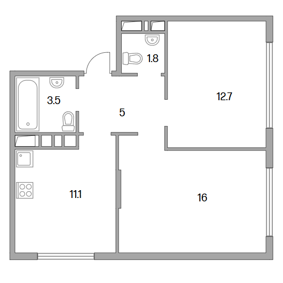 Сдача в 2026 году 12.7, 16 м2 11.1 м2