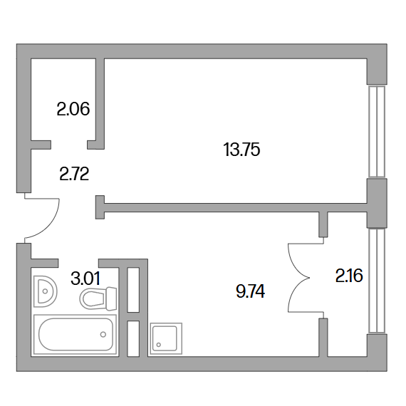 1-комн. квартира 34.73 м2, этаж 13/15Сдача в 2028 году