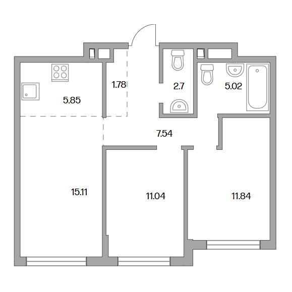 Сдача в 2027 году 11.04, 11.84, 15.11 м2 5.85 м2