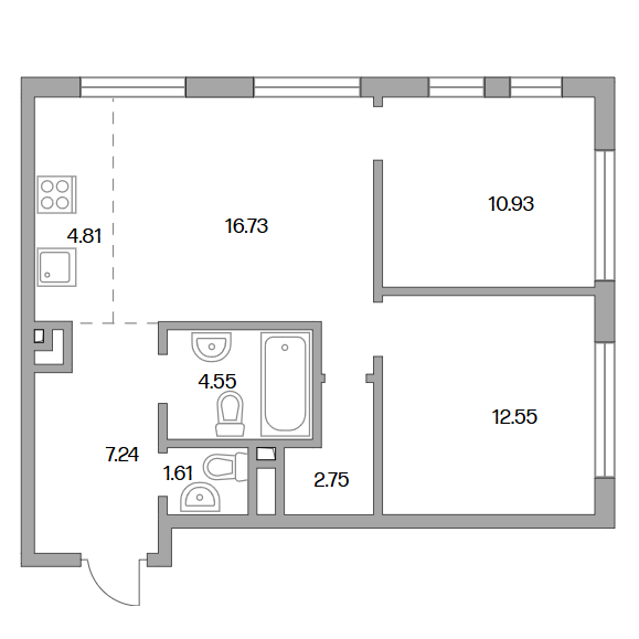 Сдача в 2027 году 10.93, 12.55, 16.73 м2 4.81 м2