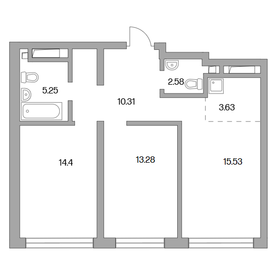 Сдача в 2027 году 13.28, 14.4, 15.53 м2 3.63 м2