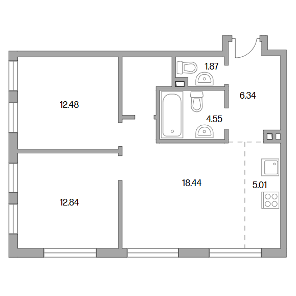Сдача в 2027 году 12.48, 12.84, 18.44 м2 5.01 м2