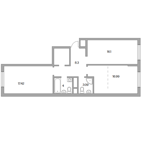 Сдача в 2027 году 16.1, 17.42 м2 16.99 м2