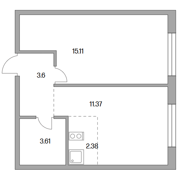 Сдача в 2026 году 11.37, 15.11 м2 2.38 м2