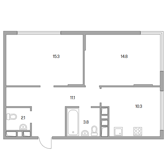 Сдача в 2026 году 14.8, 15.3 м2 10.3 м2
