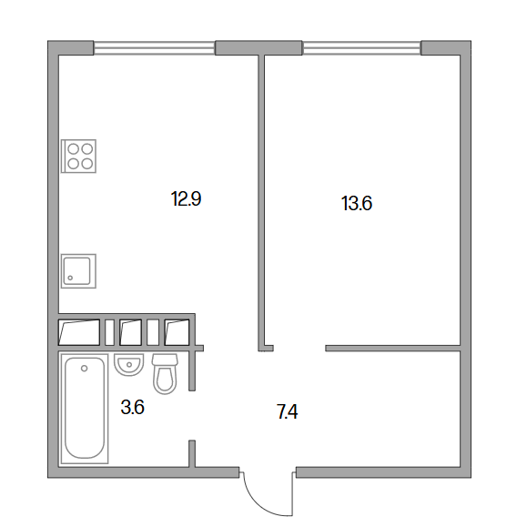 Сдача в 2026 году 13.56 м2 12.55 м2