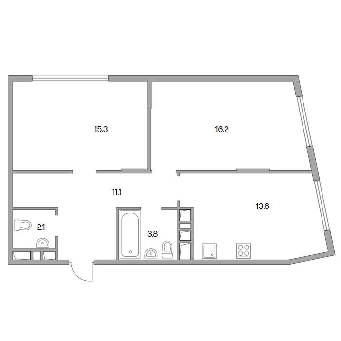 Сдача в 2026 году 15.3, 16.2 м2 13.6 м2