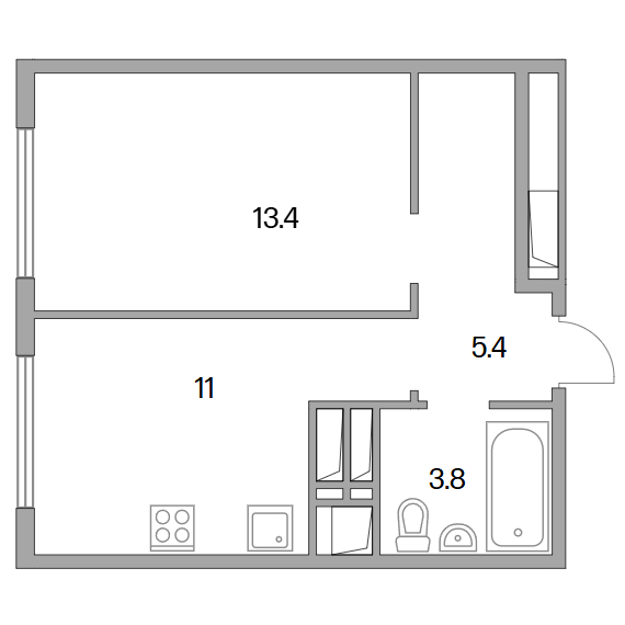 1-комн. квартира 33.6 м2, этаж 19/23Сдача в 2026 году