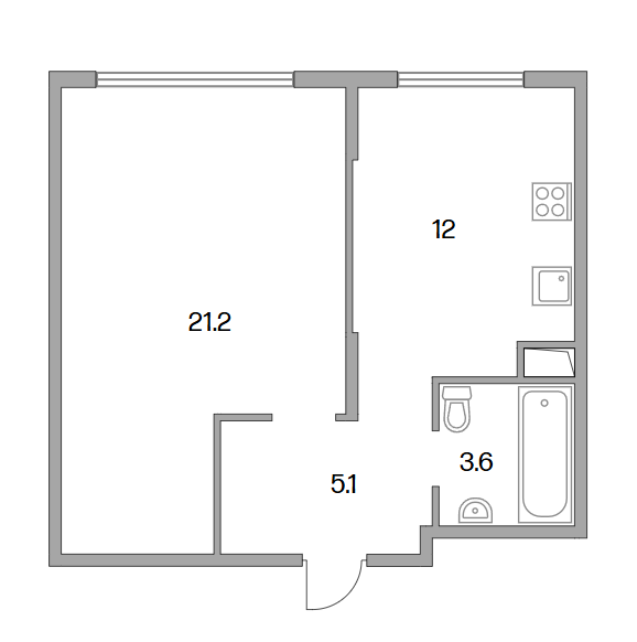 1-комн. квартира 41.9 м2, этаж 2/23Сдача в 2026 году