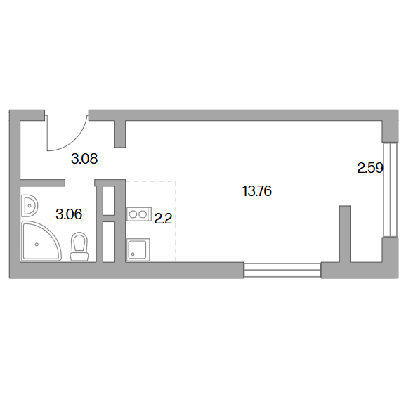 Студия 25.25 м2, этаж 1/6Сдача в 2026 году