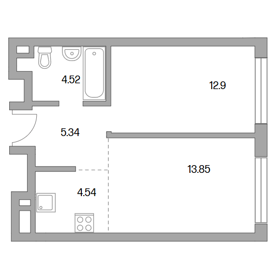 Сдача в 2027 году 12.9, 13.85 м2 4.54 м2