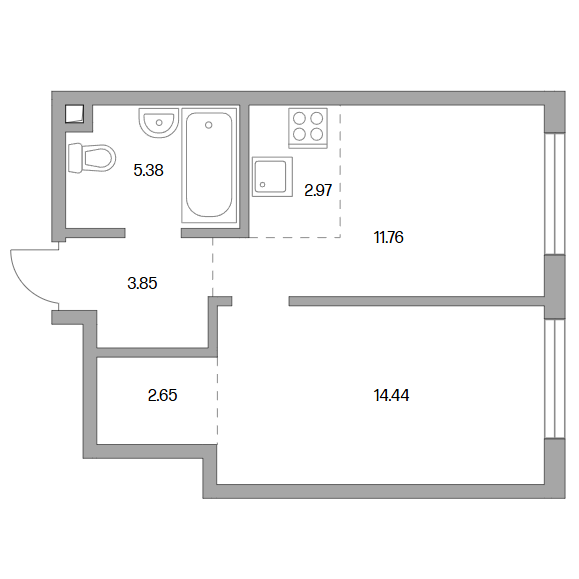 Сдача в 2027 году 11.76, 14.44 м2 2.97 м2