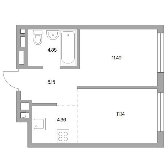 Сдача в 2027 году 11.14, 11.49 м2 4.36 м2
