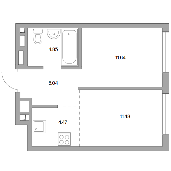 Сдача в 2027 году 11.48, 11.64 м2 4.47 м2