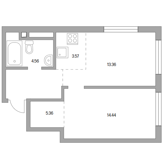 Сдача в 2027 году 13.36, 14.44 м2 3.57 м2