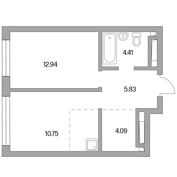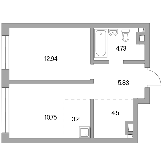 Сдача в 2027 году 10.75, 12.94 м2 3.2 м2
