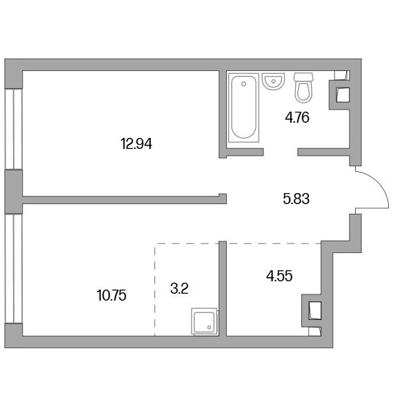 Сдача в 2027 году 10.75, 12.94 м2 3.2 м2