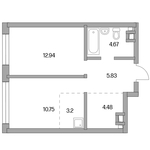 Сдача в 2027 году 10.75, 12.94 м2 3.2 м2