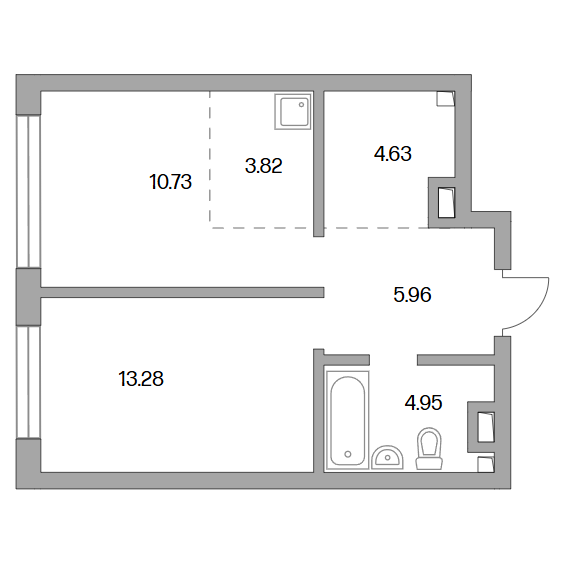 Сдача в 2027 году 10.73, 13.28 м2 3.82 м2