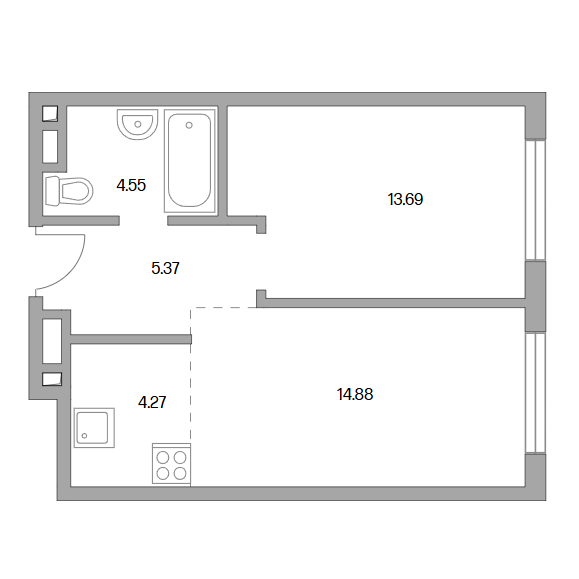 Сдача в 2027 году 13.69, 14.88 м2 4.27 м2