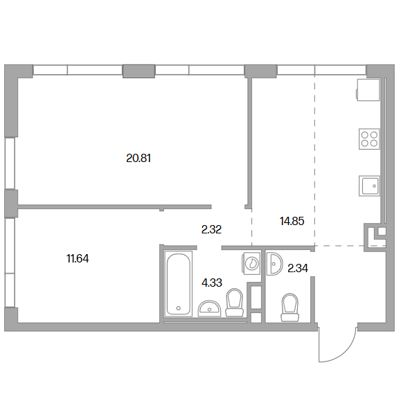 Сдача в 2028 году 11.64, 20.81 м2 14.85 м2