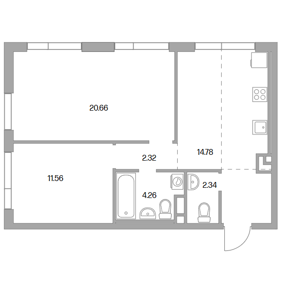 Сдача в 2028 году 11.56, 20.66 м2 14.78 м2