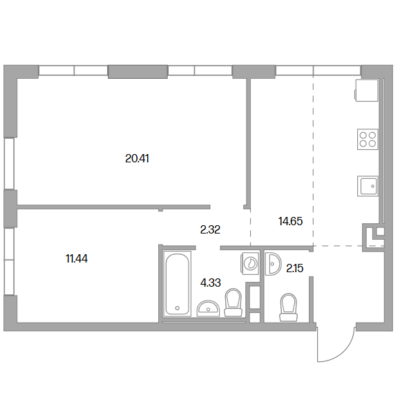 Сдача в 2028 году 11.44, 20.41 м2 14.65 м2