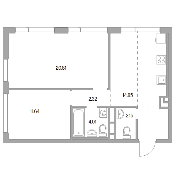 Сдача в 2028 году 11.64, 20.81 м2 14.85 м2
