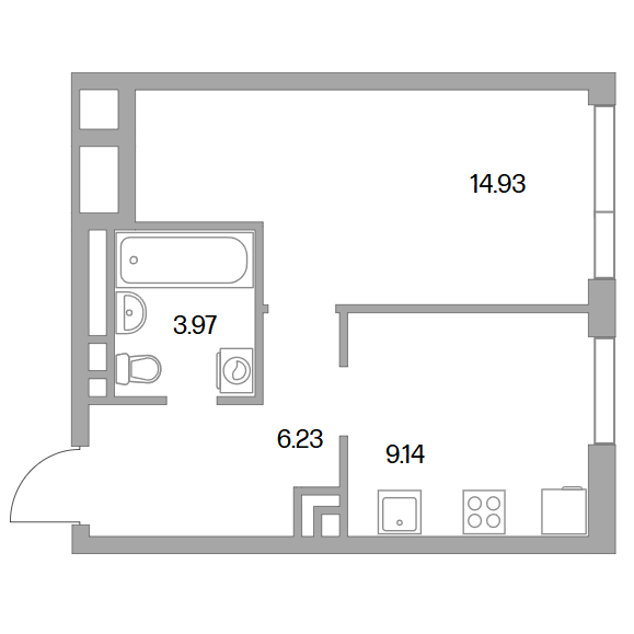 1-комн. квартира 34.27 м2, этаж 7/17Сдача в 2028 году