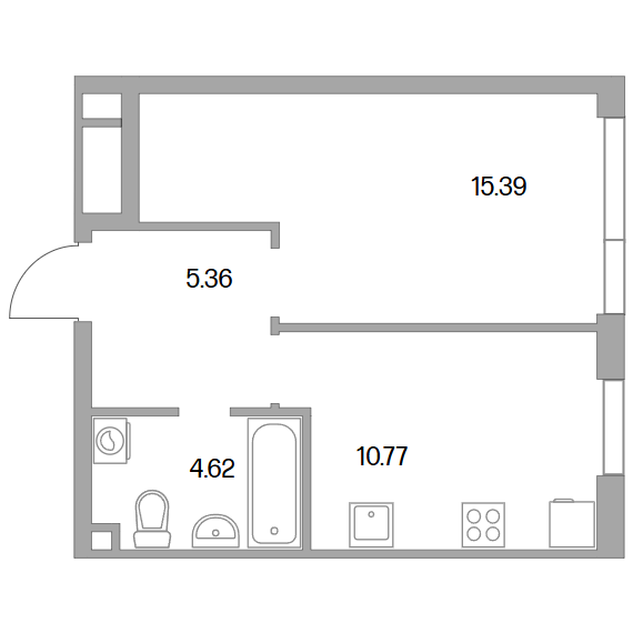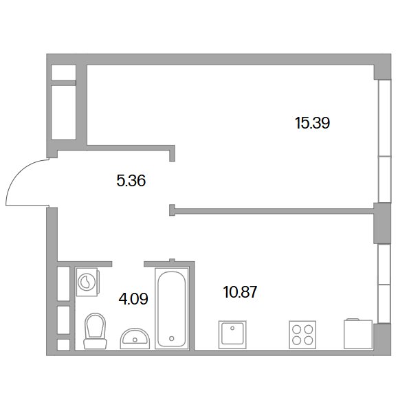 1-комн. квартира 35.28 м2, этаж 2/17Сдача в 2028 году