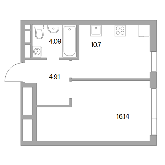 1-комн. квартира 35.71 м2, этаж 13/17Сдача в 2028 году