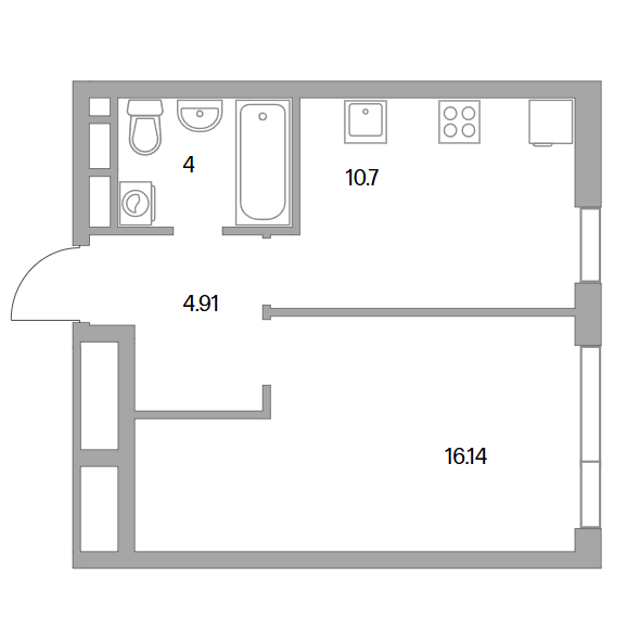 1-комн. квартира 27.9 м2, этаж 5/21Сдача в 2022 году
