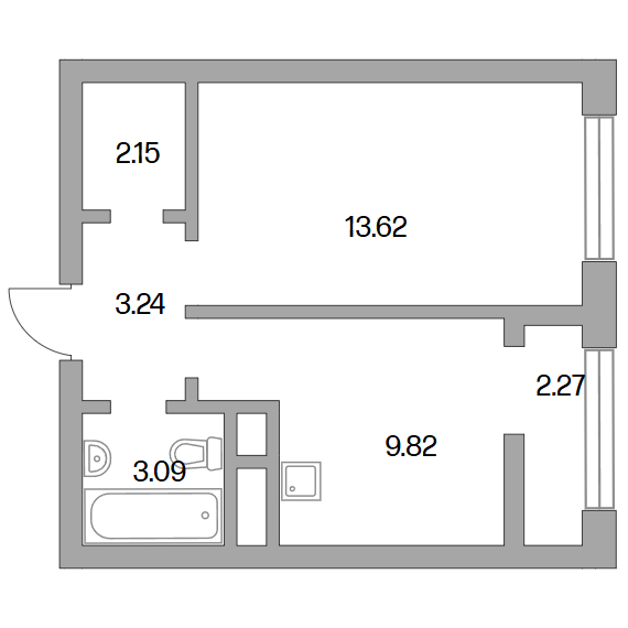 1-комн. квартира 35.26 м2, этаж 15/17Сдача в 2028 году