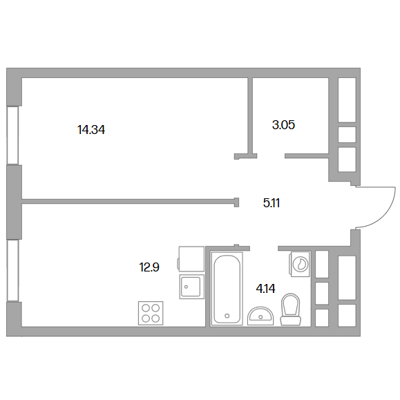 1-комн. квартира 40.67 м2, этаж 13/14Сдача в 2025 году
