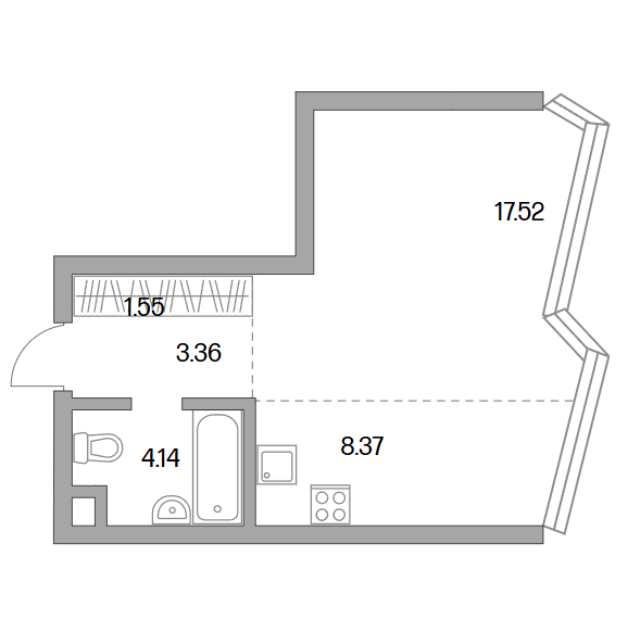 1-комн. квартира 34.94 м2, этаж 14/14Сдача в 2028 году
