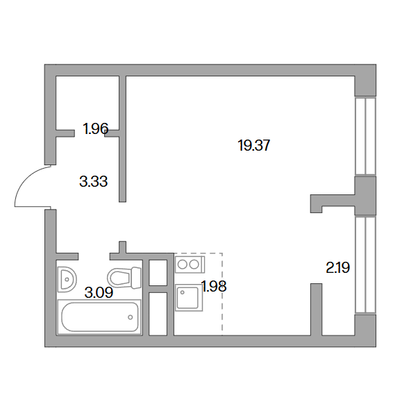 Сдача в 2026 году 12.7 м2 4.04 м2