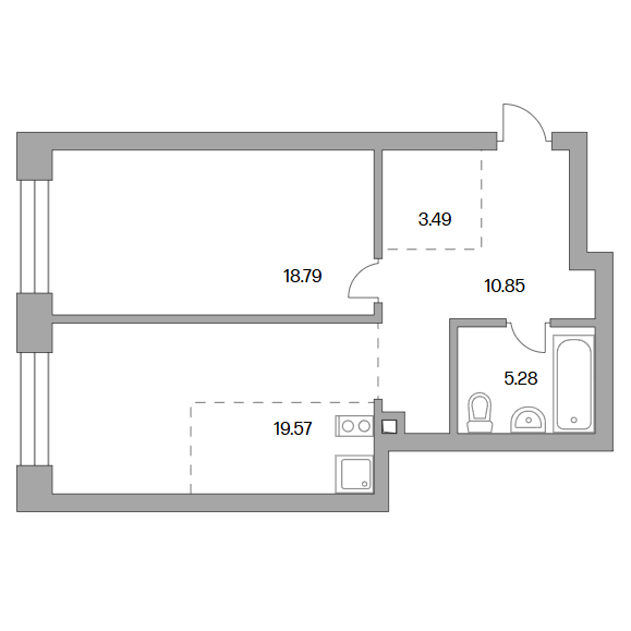 1-комн. квартира 55.68 м2, этаж 20/22Сдача в 2028 году